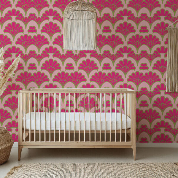 Elegant Florence Broadhurst Inspired Art Deco Fan Motif Wallpaper