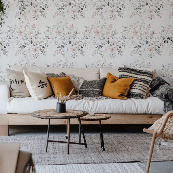 Elegant Floral Beige and Gray Blossom Wallpaper