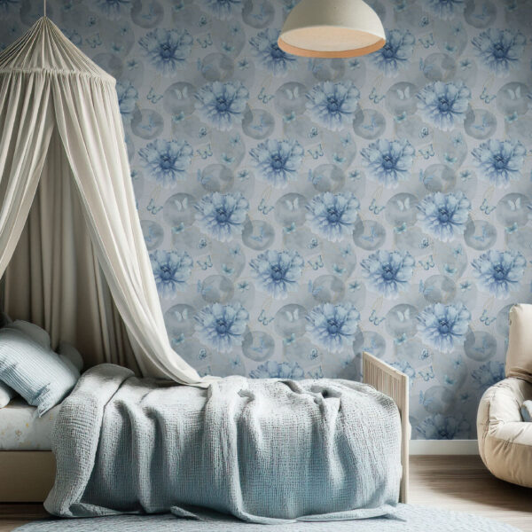 Whimsical Blue Floral and Butterfly Elegance