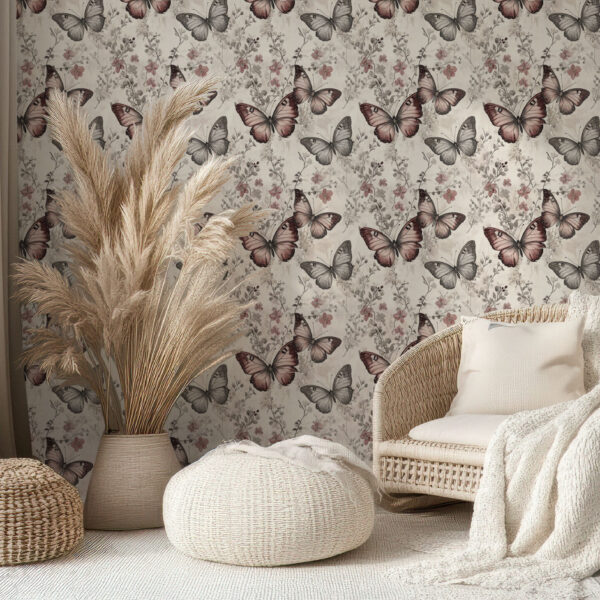 Elegant Butterfly Garden Floral Wallpaper