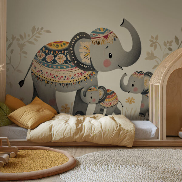Playful Elephant Family Nursery Wallpaper