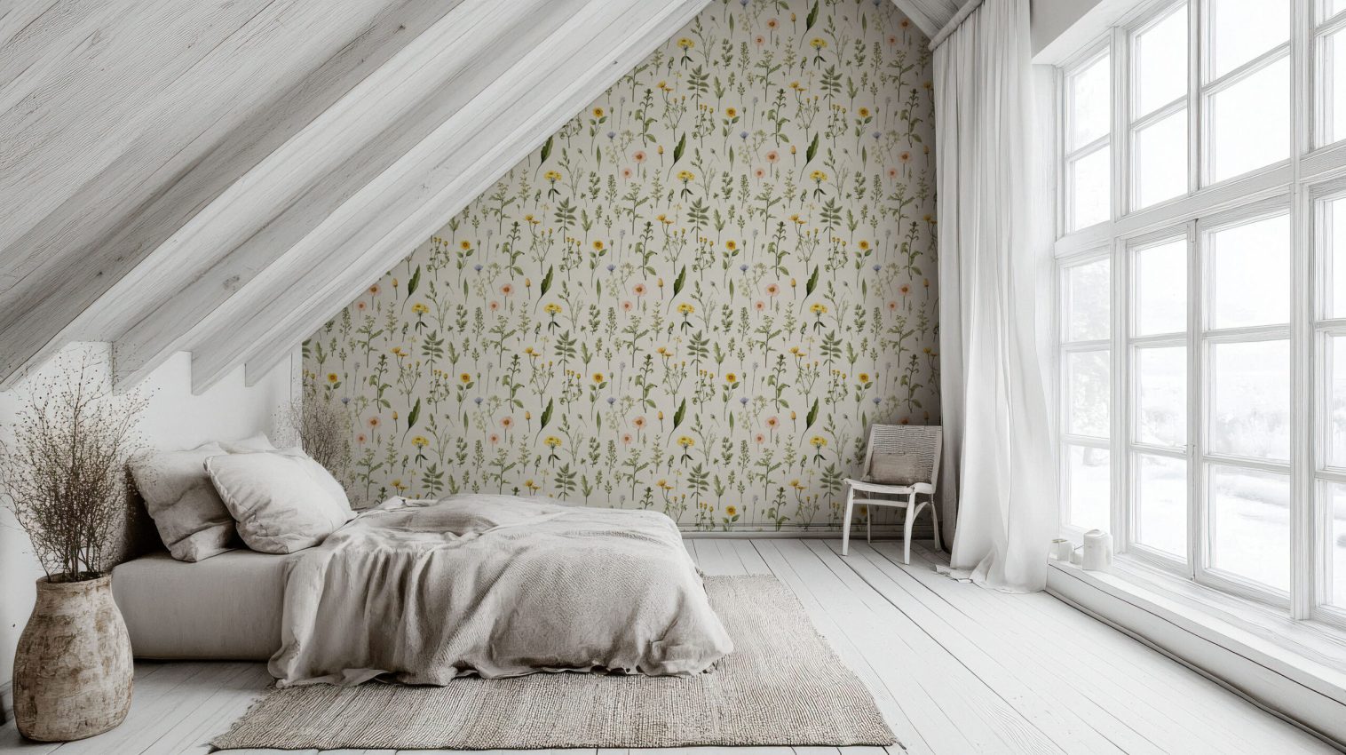 Embrace the beauty of nature with this exquisite botanical wallpaper, featuring delicate floral motifs in subtle, earthy tones. Ideal for creating a serene and charming ambiance, it’s perfect for living rooms and bedrooms. Available in Peel and Stick and Non-Woven Traditional material types.