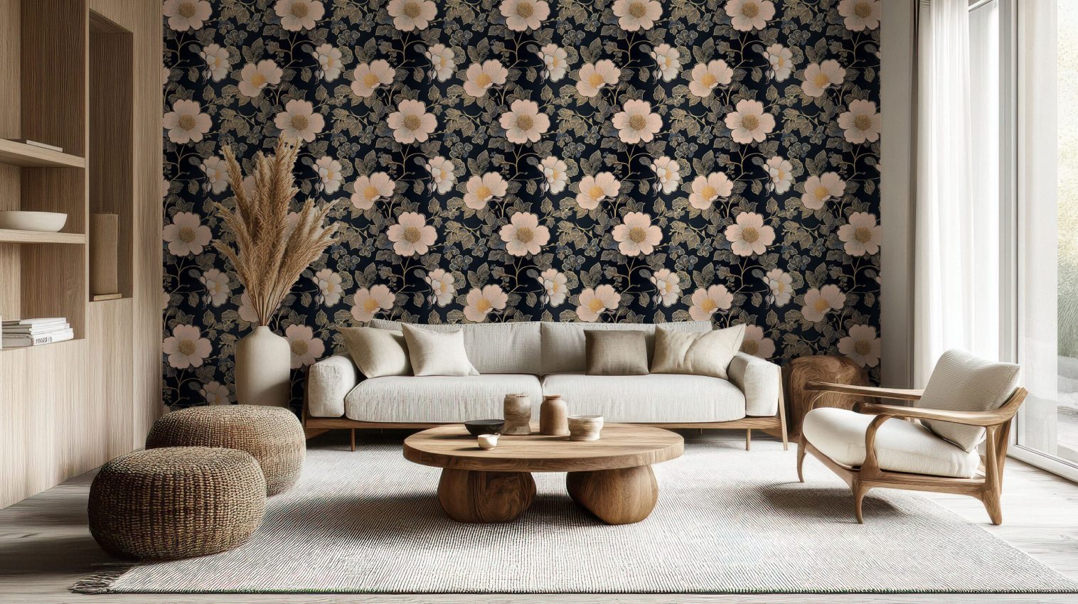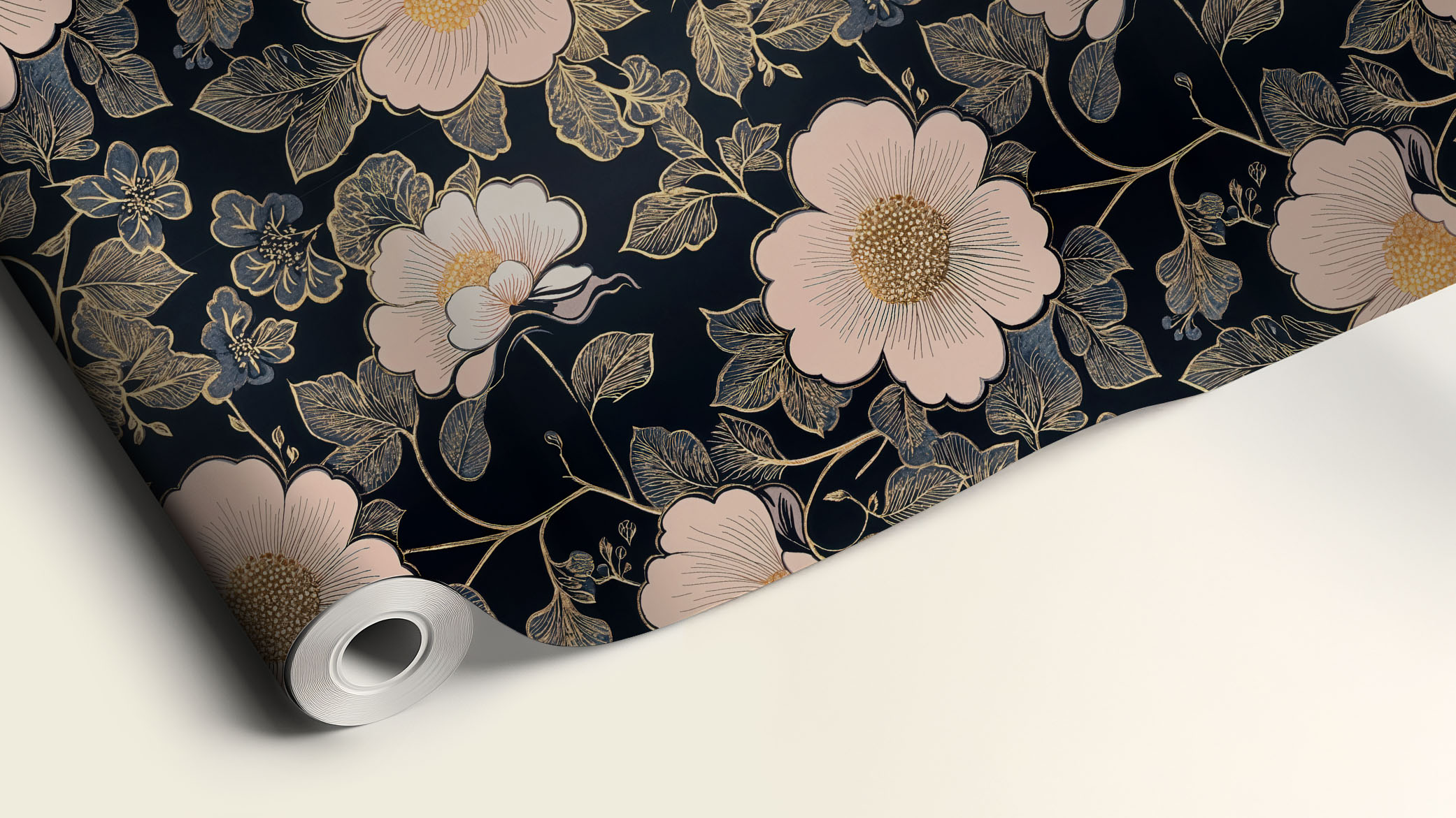 Transform your space with this luxurious wallpaper featuring exquisite floral patterns and delicate detailing in gold and beige. Ideal for adding a touch of elegance to any room, this design is available in both Peel and Stick and Non-Woven Traditional material types.