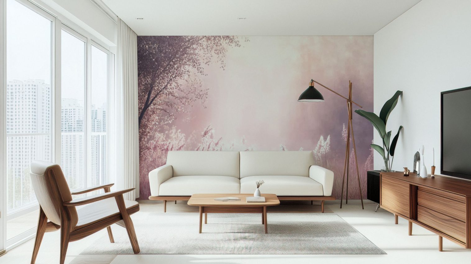 Immerse your home in tranquility with this enchanting misty woodland wallpaper. Featuring delicate tones and ethereal trees, it adds a serene and calming aura to any room. Available in both Peel and Stick and Non-Woven Traditional material types.