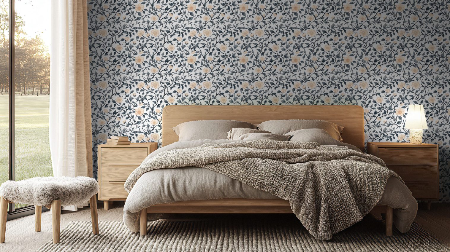 Elevate your home decor with this stunning wallpaper featuring elegant floral patterns in soft, harmonious colors. Perfect for transforming any room, this design is available in both Peel and Stick and Non-Woven Traditional material types.