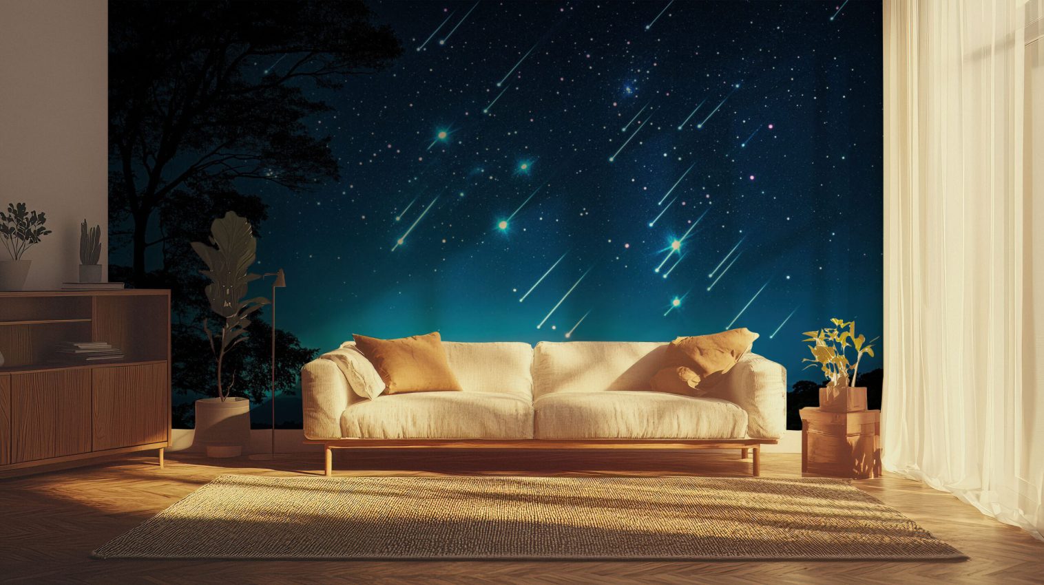 Transform your space with a breathtaking wallpaper featuring a serene night sky filled with shooting stars. This design brings a sense of wonder and tranquility, perfect for creating a calming atmosphere. Available in both Peel and Stick and Non-Woven Traditional material types.