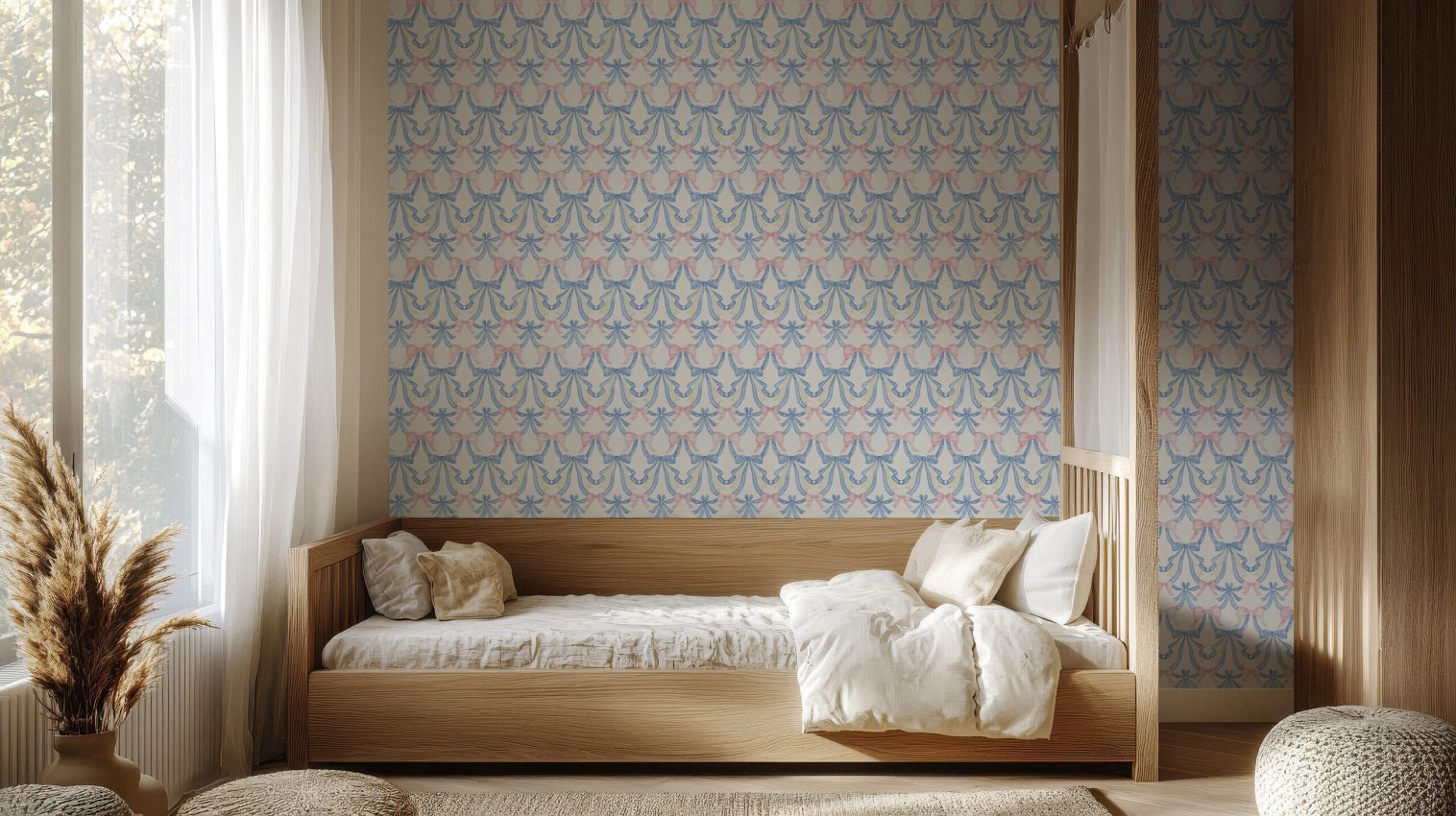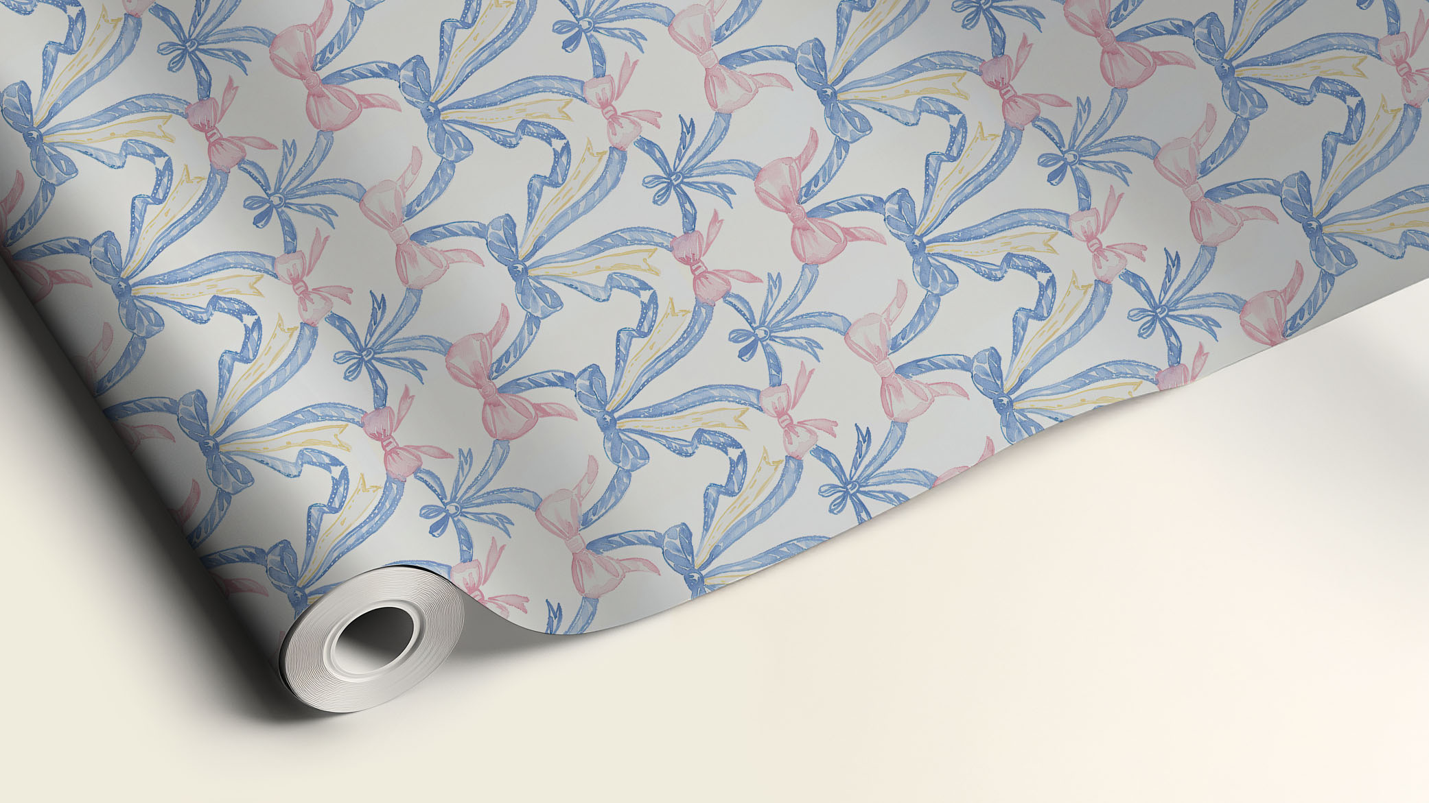 Adorn your walls with this charming wallpaper showcasing playful ribbons and bows in a soothing palette. Perfect for creating a delightful atmosphere in nurseries and kids’ bedrooms. Available in both Peel and Stick and Non-Woven Traditional material types.