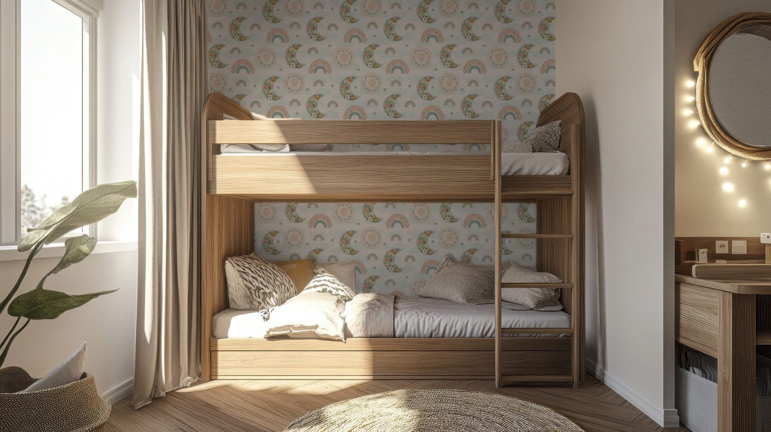 Delight in a whimsical wallpaper design featuring charming moons adorned with flowers and playful rainbows. Perfect for creating a serene, imaginative atmosphere in any space. This wallpaper is available in both Peel and Stick and Non-Woven Traditional material types.