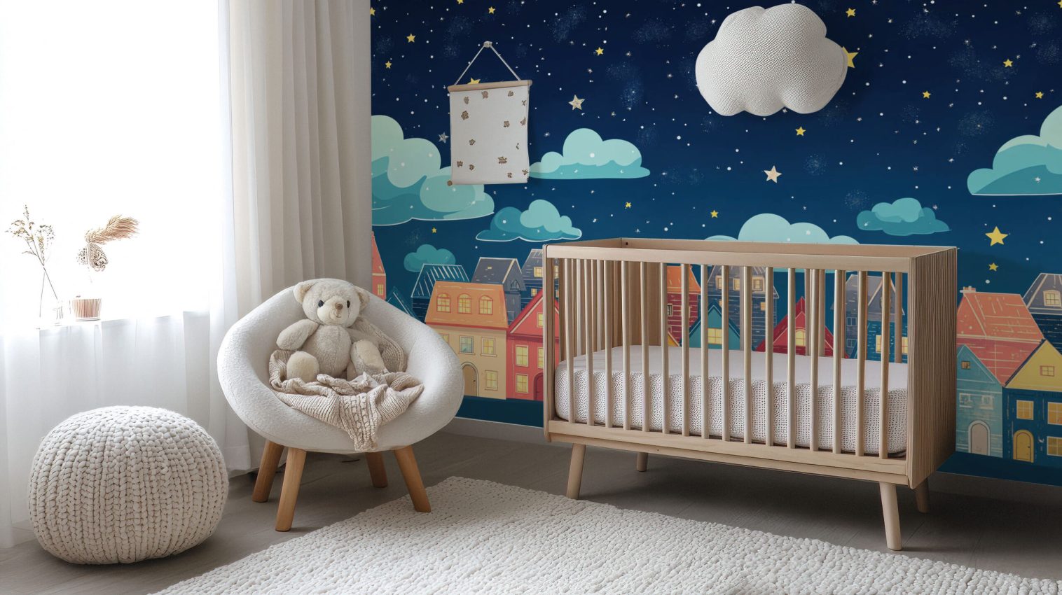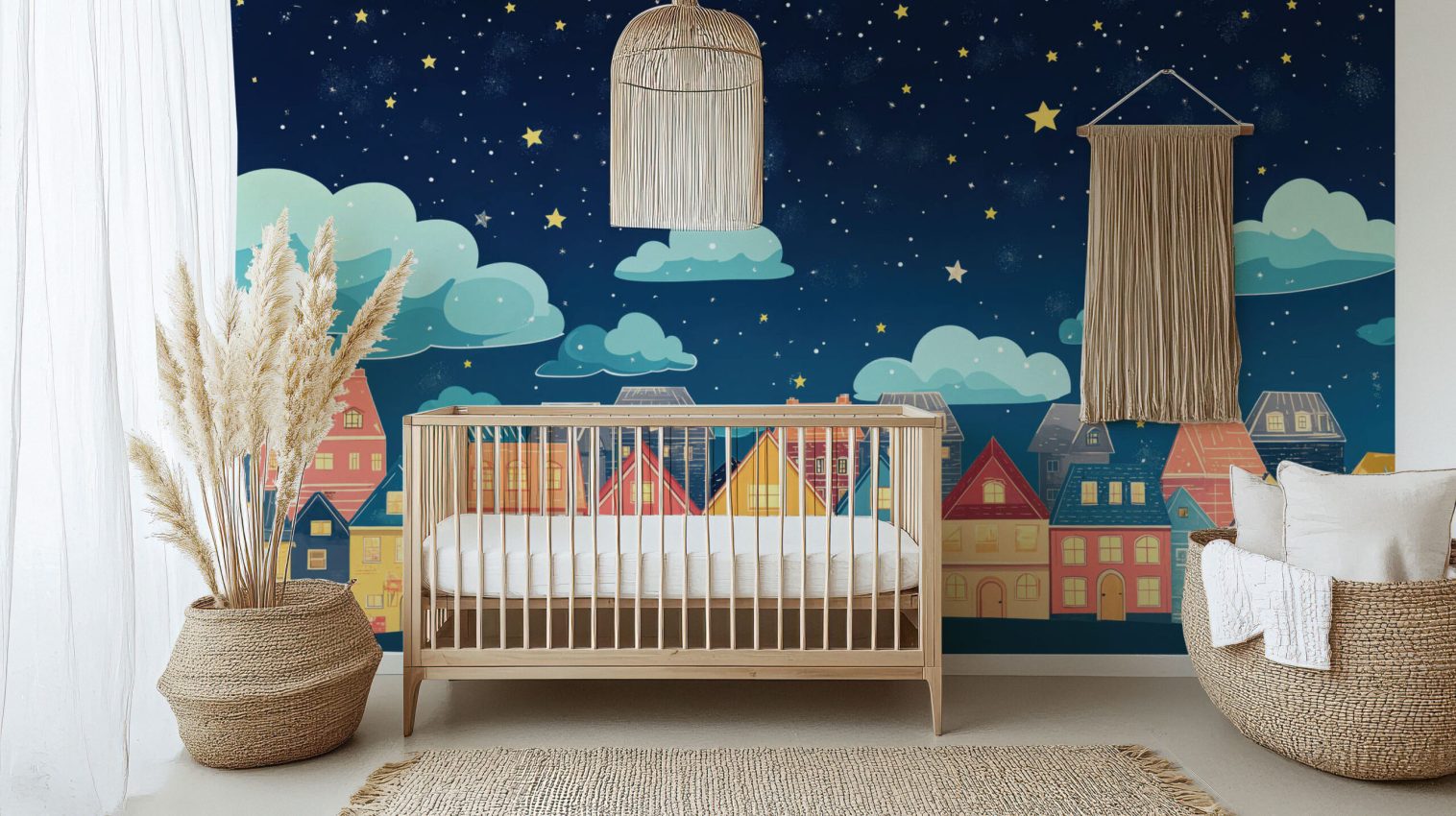 Enchant your child’s space with a whimsical wallpaper featuring charming houses under a starry night sky. Perfect for fostering creativity and dreams, this design is available in both Peel and Stick and Non-Woven Traditional material types.